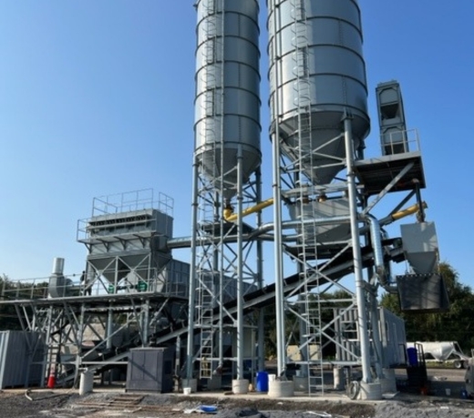 The dry mix Concrete Batching Plant combines aggregate materials such as sand, gravel, and cement in precise measurements. The mixture is discharged into a mixer truck, combined with a measured amount of water, and mixed in the truck on the way to the construction site.